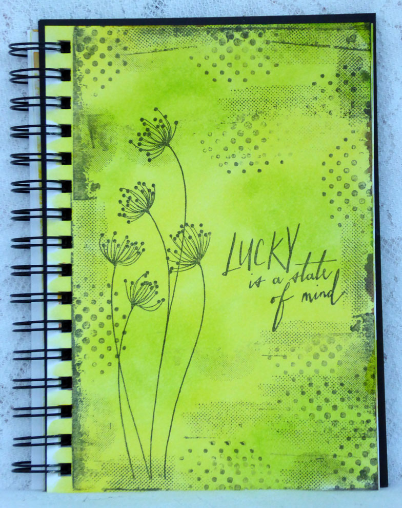 I did manage a bit of crafting though for my inspiration for the new challenge at Make My Monday which has the theme of Lucky this week. I struggled with this a bit until I realised that one of the Handwritten Thoughts by Tim Holtz was about lucky being a state of mind and my journal page below is the result. Hope you like it.