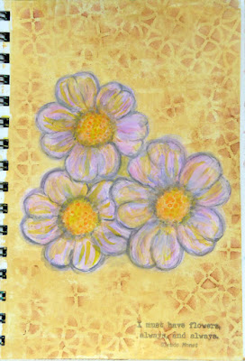I want to share the first bit of hand painting that I've done in an absolute age which is a page in my A5 art journal as I need to practice before putting paint to canvas. I decided on flowers inspired by one of the beautiful quotes on Alison's (of Words and Pictures) first issue of stamps for Paper Artsy which I've only just had the time to ink up.
